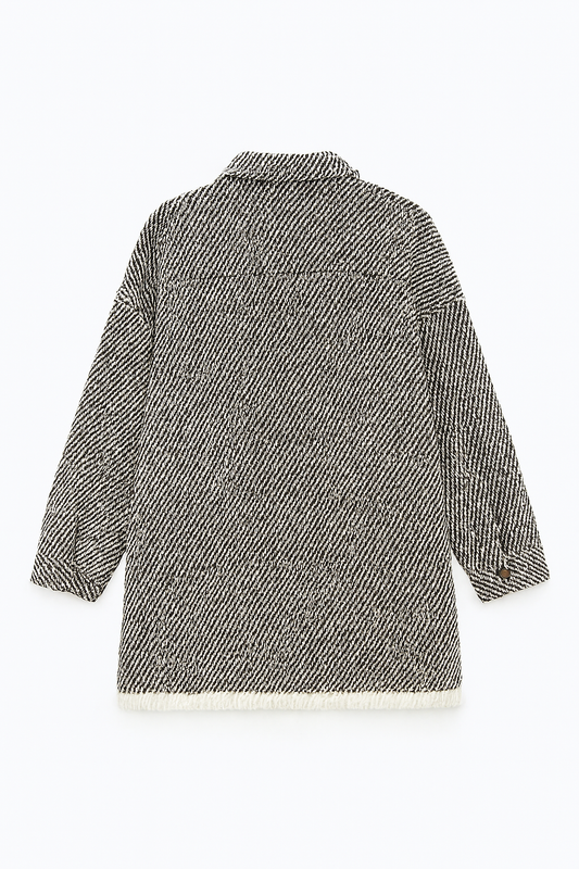 Overshirt im Fischgrät-Look mit Fransen