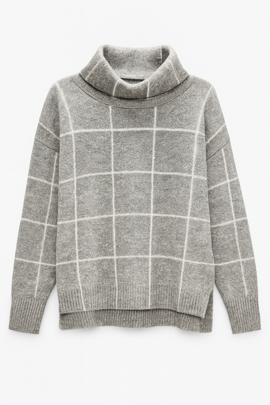 Cozy snowflake sweater — loose fit, warm high collar