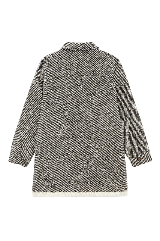 Herringbone Overshirt with Fringes – bold, textured, effortles